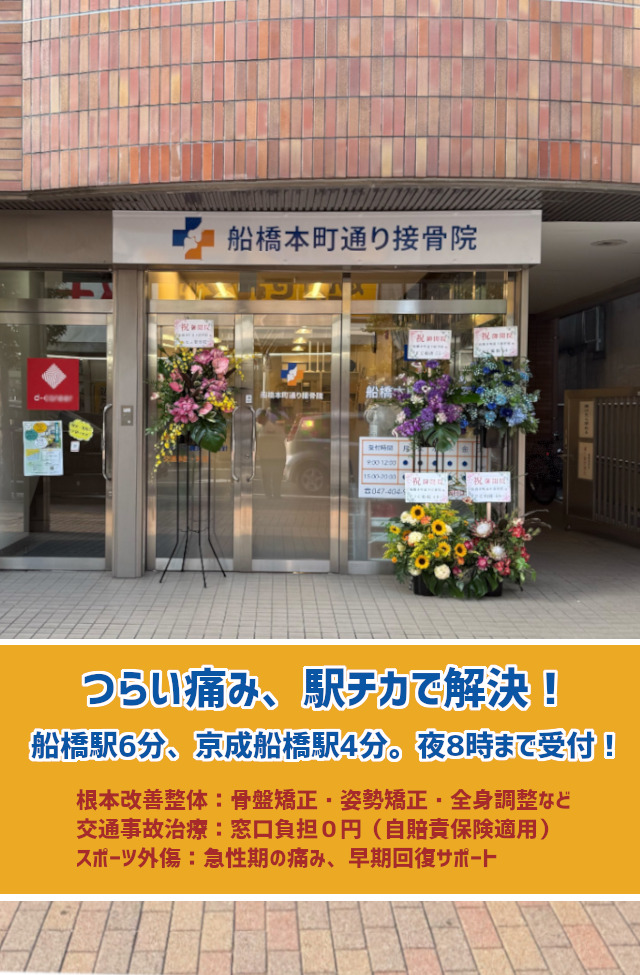 船橋本町通り接骨院では、徹底したカウンセリングと丁寧な検査で、あなたの身体の歪みやバランスの崩れ、生活習慣まで深く掘り下げて分析します。そして、特定された根本原因に対し、骨盤矯正・姿勢矯正・全身調整といった専門的なアプローチで、身体の軸を正しい位置へと導きます。